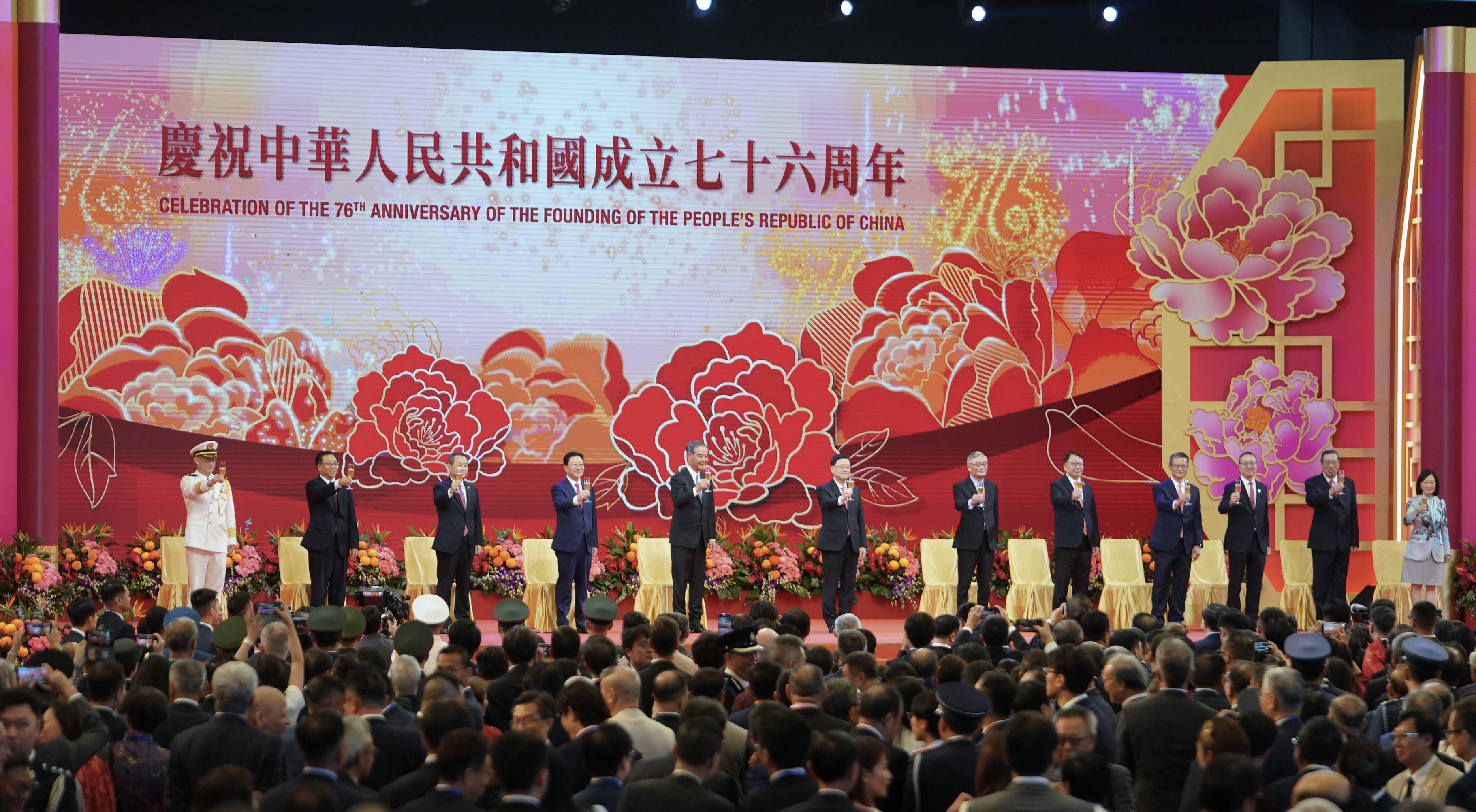 新华社香港10月1日电(记者刘英伦)香港特区政府10月1日上午举行升旗仪式和国庆酒会,庆祝中华人民共和国成立76周年。