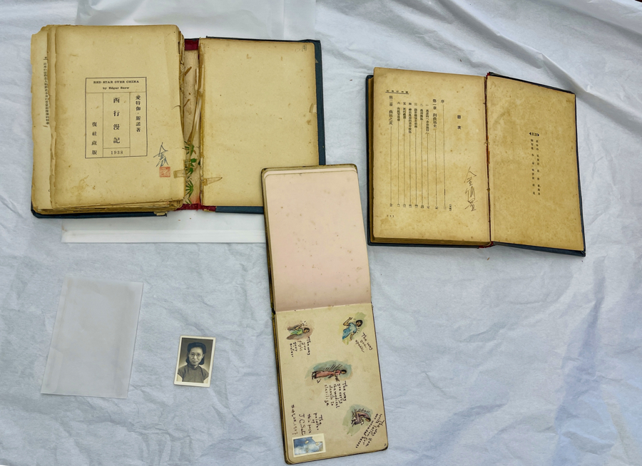 此次征藏鉴研会中展示的文物文献,涵盖日军侵华罪证、民间支援、文化抗争等多维度,七成以上来自各界捐赠。如胡金仙所藏的文物中,不仅有斯诺签名版《西行漫记》、《续西行漫记》,也有其在伤兵医院担任护士时伤病员和医生为她而写的留言簿。它们展示了外国友人支援中国抗战,也从个体视角出发记录下抗战中的点滴。