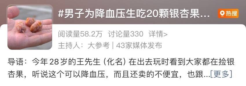 不止,杭州刘阿姨不知道从哪里听人说银杏果可以降血压,于是去捡了一口袋,一次性吃了快一斤。