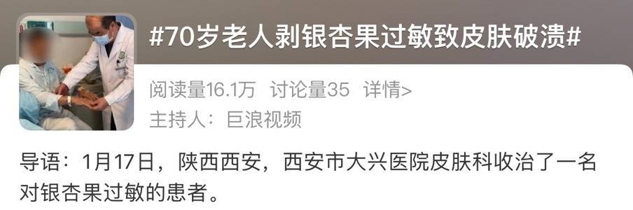 去年1月,李大爷图便宜就捡了一些银杏果回家清洗食用,没想到的是洗完没多久皮肤上就出现了脱皮、溃烂的症状,经检查发现是因为银杏果过敏所致。